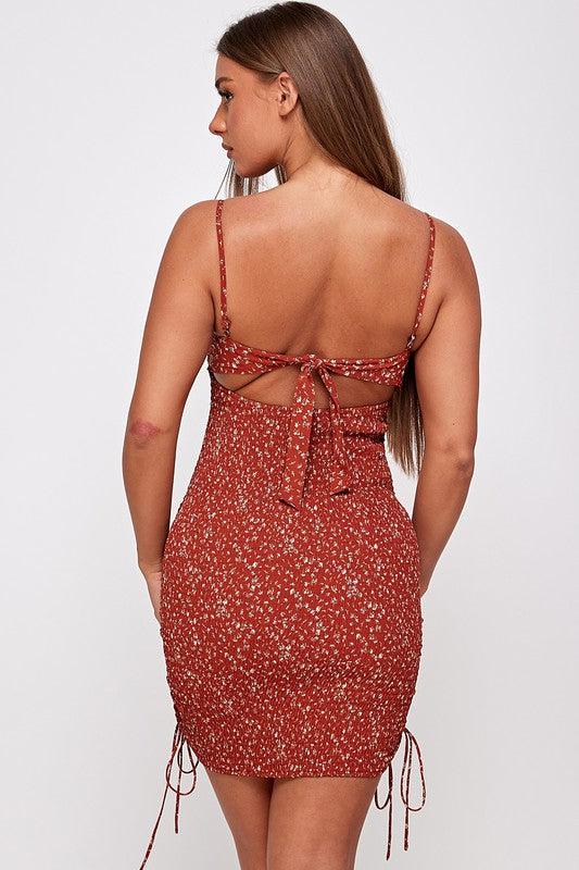 Ruched Floral Print Mini Dress
